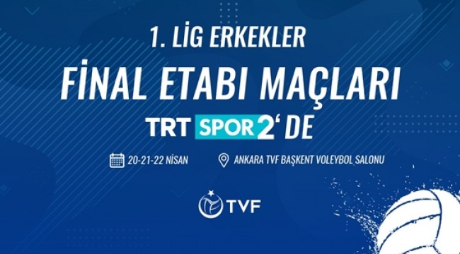 TVF Erkekler 1. Ligi Final Etabı’nın tüm heyecanı, TRT SPOR 2 ekranlarından voleybol severler ile buluşacak.20-21-22 Nisan 2021 tarihlerinde Ankara TVF Başkent Voleybol Salonu’nda oynanacak 5 karşılaşma TRT Spor 2’de, 1 maç da TVF Voleybol TV’den canlı olarak ekranlara gelecek.TVF Erkekler 1. Ligi final etabının maç programı şu şekilde: